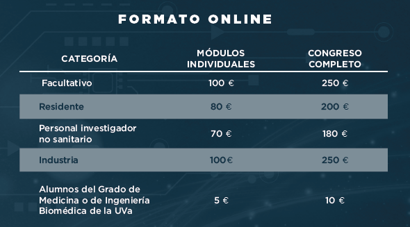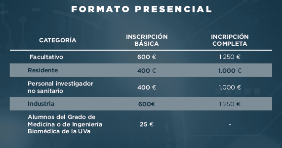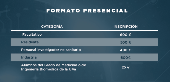 *En la modalidad de Alumnos del Grado de Medicina o de Ingeniería Biomédica de la UVa, la inscripción no incluye la cena del congreso